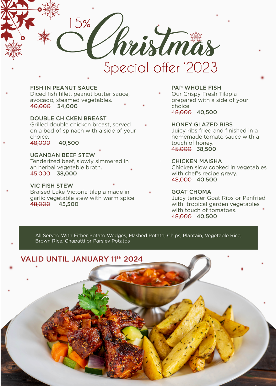 15% off select meals all through the this Christmas offer. Valid until January 11th